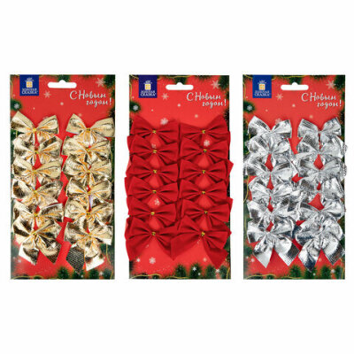 Украшение ёлочное "Бантики", НАБОР 36 шт. (3 цвета по 12 шт.), 5x5 см, ЗОЛОТАЯ СКАЗКА, 592152