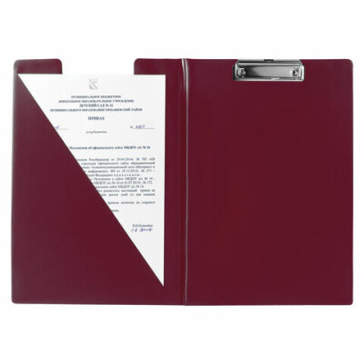 Папка-планшет ОФИСМАГ, А4 (340х240 мм), с прижимом и крышкой, картон/ПВХ, РОССИЯ, бордовая, 225984