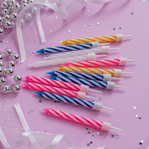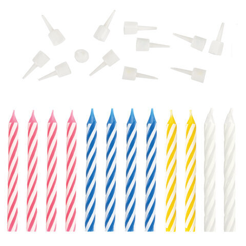 Набор свечей для торта 12 шт., 6 см, с держателями, ЗОЛОТАЯ СКАЗКА, в блистере, 591446