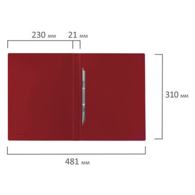 Папка с металлическим скоросшивателем BRAUBERG стандарт, красная, до 100 листов, 0,6 мм, 221632