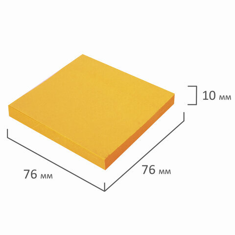 Блок самоклеящийся (стикеры) BRAUBERG НЕОНОВЫЙ 76х76 мм, 90 листов, оранжевый, 111349