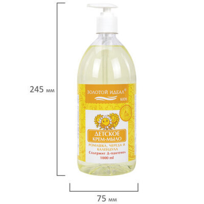 Мыло-крем жидкое гипоаллергенное 1 л, ЗОЛОТОЙ ИДЕАЛ KIDS "Ромашка, череда и календула", дозатор, 609430