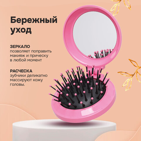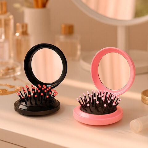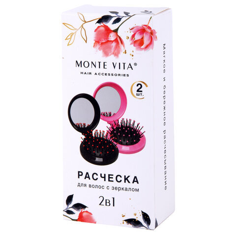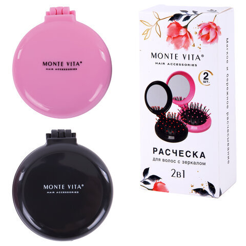 Расческа для волос КОМПЛЕКТ 2шт массажная с зеркалом "2 в 1" 6,5см, компактная, MONTE VITA (МОНТЕ ВИТА), 457438