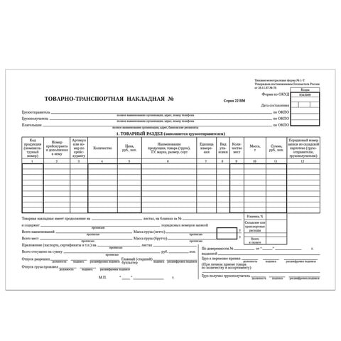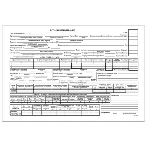 Бланк бухгалтерский, офсет, "Товарно-транспортная накладная", А4 (198х275 мм), СПАЙКА 100 шт., STAFF, 130135