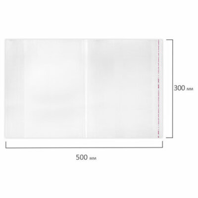 Обложки ПП для учебников и тетрадей А4 БОЛЬШОГО ФОРМАТА, КОМПЛЕКТ 5 шт., КЛЕЙКИЙ КРАЙ, 80 мкм, 300х500 мм, универсальные, 16.43/5