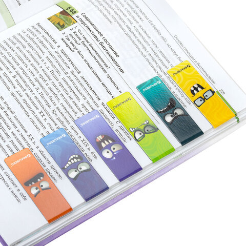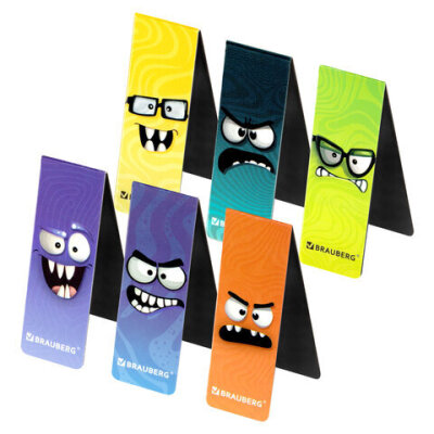 Закладки для книг МАГНИТНЫЕ, "МОНСТРИКИ", набор 6 штук, 60x20 мм, BRAUBERG, 116995