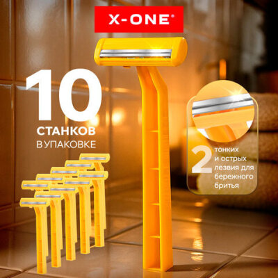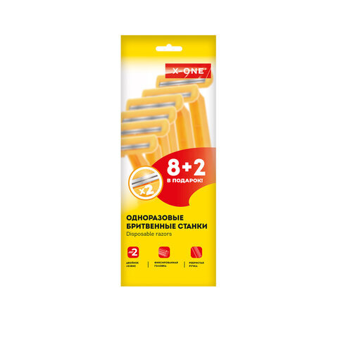Бритвенные станки одноразовые, 2 лезвия, фиксированная головка, 10 штук, желтый, X-ONE (ИКС-УАН), 700027