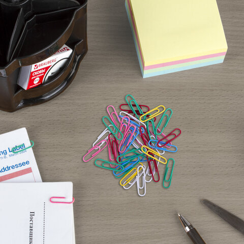 Скрепки ЭКСТРА ОФИСМАГ 28 мм цветные 100 штук, 271316