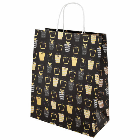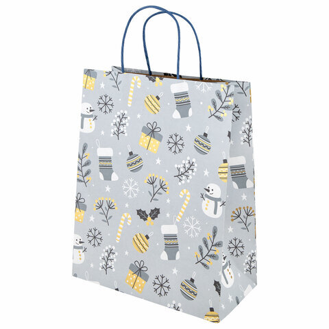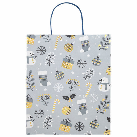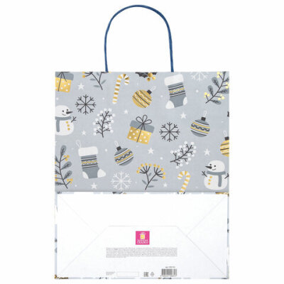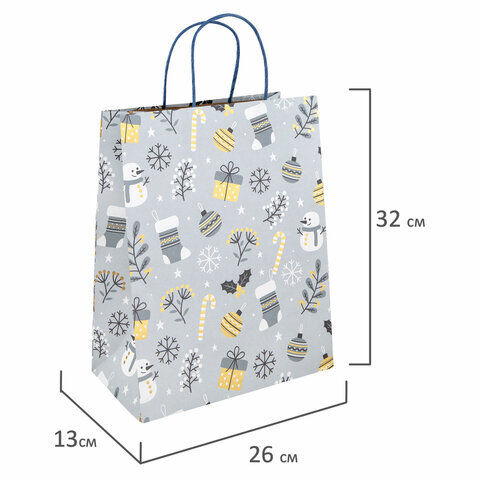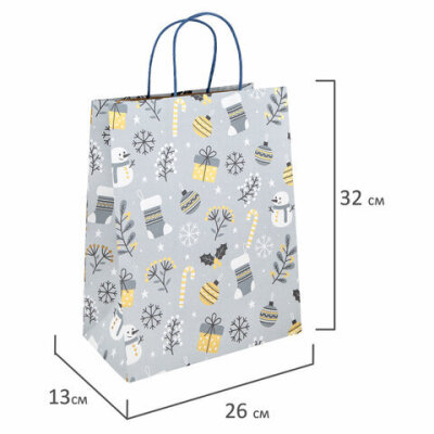 Пакет подарочный (1 штука) новогодний 26x13x32 см, "Kraft Large", ассорти, ЗОЛОТАЯ СКАЗКА, 592132
