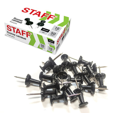 Силовые кнопки-гвоздики черные STAFF 50 штук, в картонной коробке, 271320
