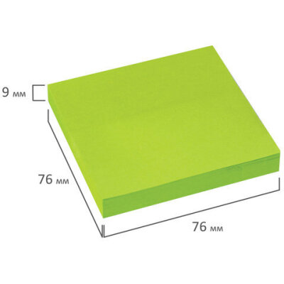 Блок самоклеящийся (стикеры), BRAUBERG, НЕОНОВЫЙ, 76х76 мм, 90 листов, зеленый, 122703