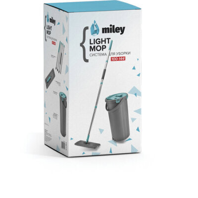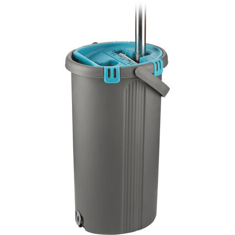 Швабра с отжимом и ведром 8л/7л двухкамерное, насадка из микрофибры карманы с 2-х сторон, серый, Light Mop, MILEY, 901-618