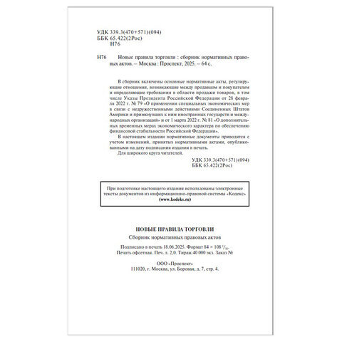Брошюра "Правила торговли", мягкий переплет, Проспект, 126114