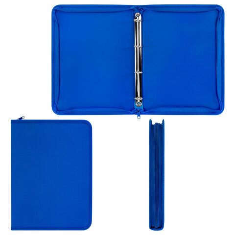 Папка объемная на молнии пластиковая на 4 кольцах, 35 мм, А4, BRAUBERG PIXEL, темно-синяя, 0,7 мм, 273080