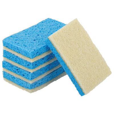 Губки для посуды 110х70х20 мм, ЦЕЛЛЮЛОЗНЫЕ + АБРАЗИВ, КОМПЛЕКТ 5 штук, синий/белый абразив, LAIMA, 700260