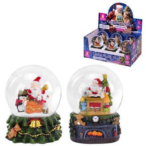 Снежный шар с LED-подсветкой "Дед Мороз" диаметр 80 мм, полистоун/стекло, ассорти 2 дизайна, ЗОЛОТАЯ СКАЗКА, 592599