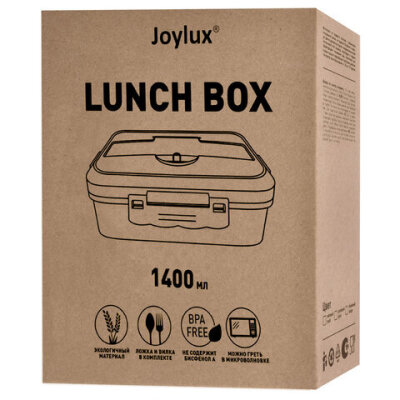 Многофункциональный герметичный ланч-бокс JOYLUX объемом 1400 мл имеет три отсека и изготовлен из пластика высокого качества – это универсальное и безопасное решение для полноценного сбалансированного приема пищи в офисе, школе, поездках и путешествиях!