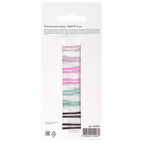 Заколки для волос НАБОР 8 шт., 5 см, клик-клак, soft touch, разные цвета, MONTE VITA (МОНТЕ ВИТА), 457092