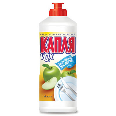 Средство для мытья посуды, 500 мл, КАПЛЯ VOX активный кислород, "Яблоко", 05032, 1558