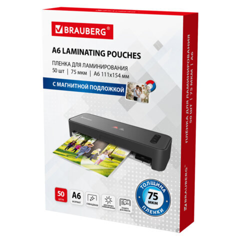 Пленки-заготовки для ламинирования, МАГНИТ ДЛЯ ФОТО, 111х154 мм, А6, КОМПЛЕКТ 50 шт., 75 мкм, BRAUBERG, 533119