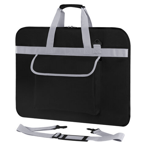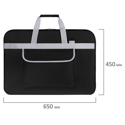 Сумка для художника СУПЕР РАЗМЕР А2+ (62 см х 45 см), чёрная, накладной карман, BRAUBERG ART CLASSIC, 272986