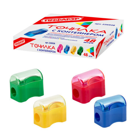 Точилка ПИФАГОР с контейнером, пластиковая, "Сундучок", цвет корпуса ассорти, 226938