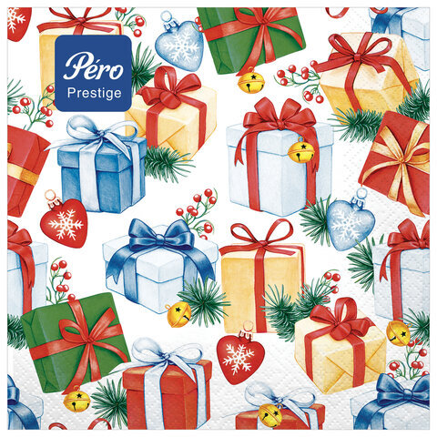 Салфетки бумажные 20 шт., 33х33 см, "Подарки", 3-слойные, PERO "Prestige", 2951