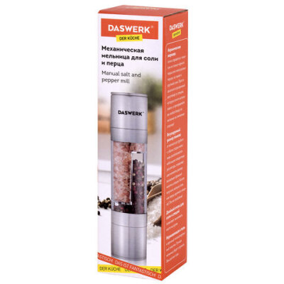 Мельница для специй, 2 в 1, 4 уровня помола, механическая, нержавеющая сталь, DASWERK (ДАСВЕРК), 456627