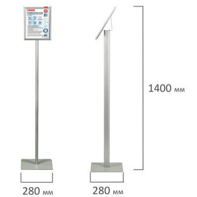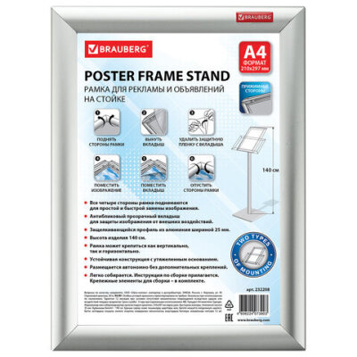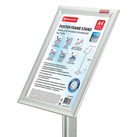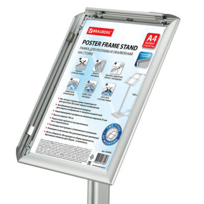 Рамка на стойке для рекламы (210х297 мм), А4, алюминиевая, прижимные стороны, BRAUBERG, 232208