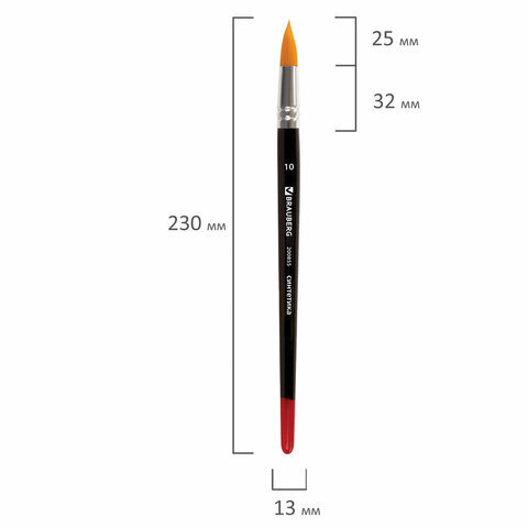 Кисть BRAUBERG синтетика, круглая, №10, 200855