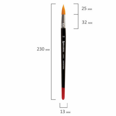 Кисть BRAUBERG № 10 подходит для работы с акварелью, гуашью, тушью, акрилом, а также для прорисовывания различных деталей рисунка. Снабжена защитным пластиковым колпачком.