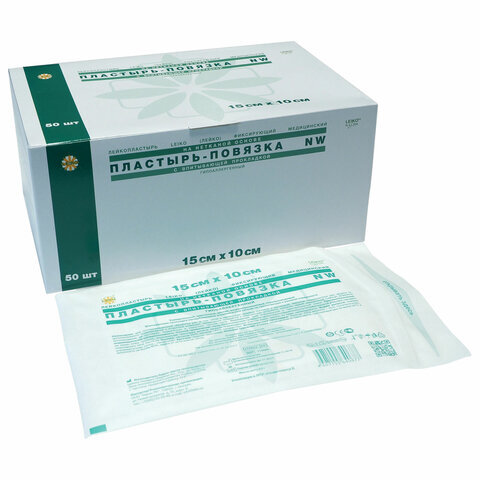 Послеоперационная пластырь-повязка LEIKO 15х10 см, на нетканой основе, со впитывающей прокладкой, 113966