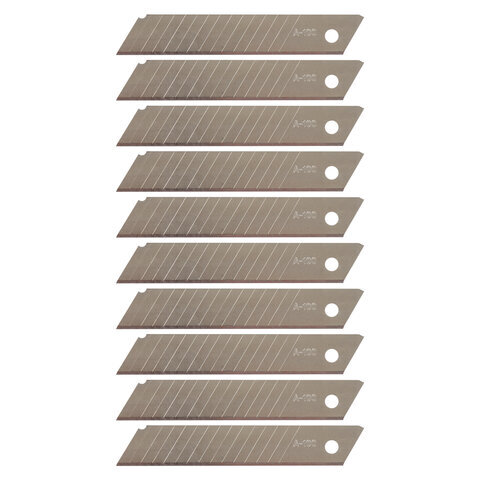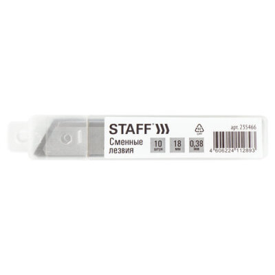 Лезвия для ножей 18 мм КОМПЛЕКТ 10 ШТ., толщина лезвия 0,38 мм, в пластиковом пенале, STAFF "Basic", 235466
