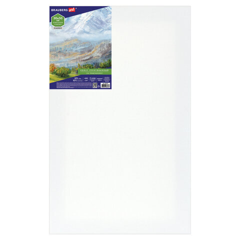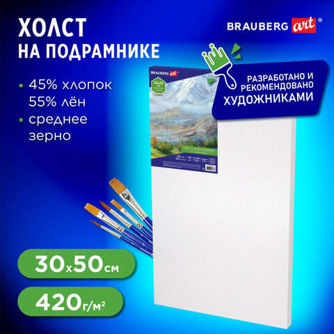 Холст на подрамнике BRAUBERG ART CLASSIC, 30х50 см, 420 г/м2, 45% хлопок 55% лен, среднее зерно, 191657