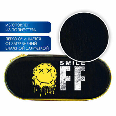 Пенал-футляр BRAUBERG, 1 отделение, органайзер, полиэстер, 22x9x5 см, "Smile OFF", 271587