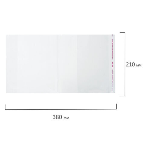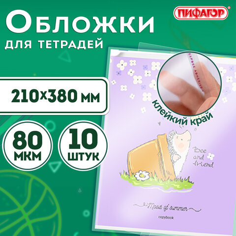 Обложки ПП для тетрадей и дневников, КОМПЛЕКТ 10 шт., КЛЕЙКИЙ КРАЙ, 80 мкм, 210х380 мм, прозрачные, ПИФАГОР, 229343