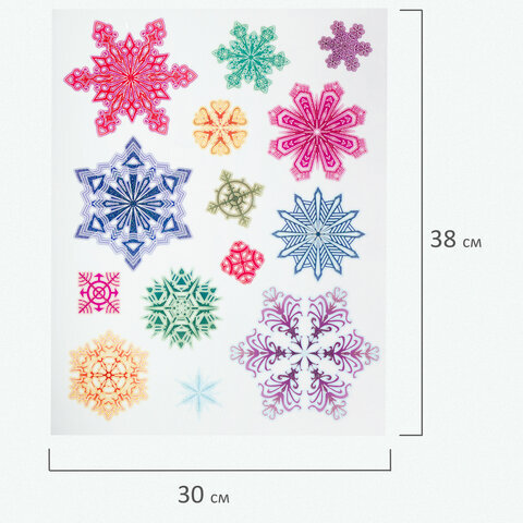 Украшение для окон и стекла ЗОЛОТАЯ СКАЗКА "Разноцветные снежинки 4", 30х38 см, ПВХ, 591214
