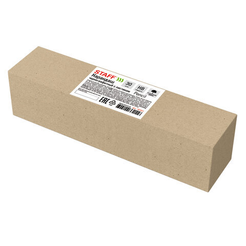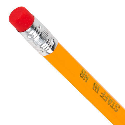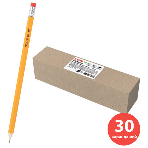 Карандаши чернографитные простые с ластиком HB, ВЫГОДНАЯ УПАКОВКА КОМПЛЕКТ 30 штук, STAFF, 181881