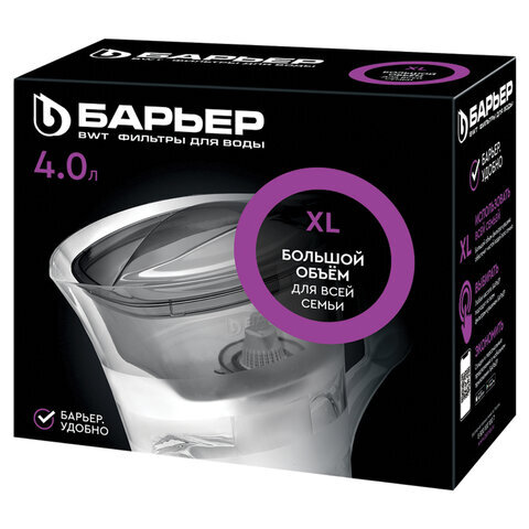 Кувшин-фильтр для очистки воды БАРЬЕР "Твист", 4 л, со сменной кассетой, зеленый, В172Р00