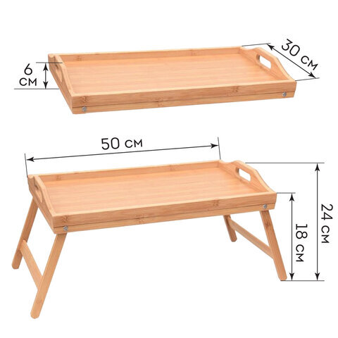 Столик-поднос БАМБУКОВЫЙ складной для завтрака/ноутбука (50х30х24 см), DASWERK (ДАСВЕРК), 607870