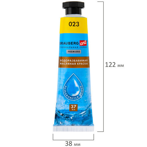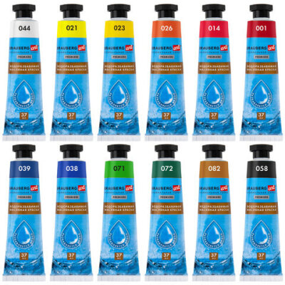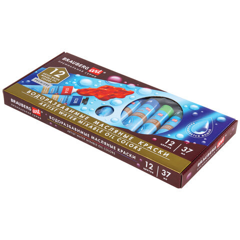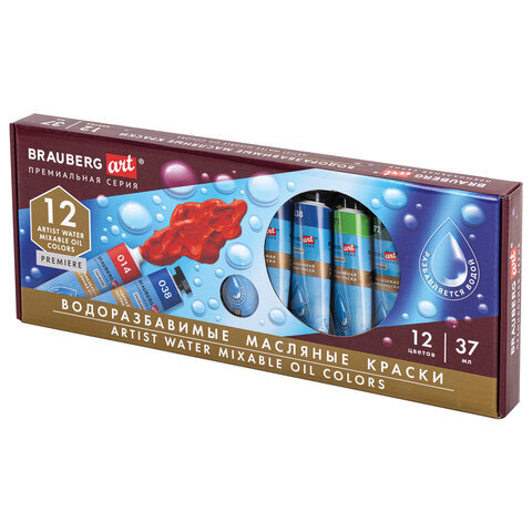 Краски масляные ВОДОРАЗБАВИМЫЕ художественные, 12 цветов по 37 мл в тубах, BRAUBERG ART PREMIERE, 192293