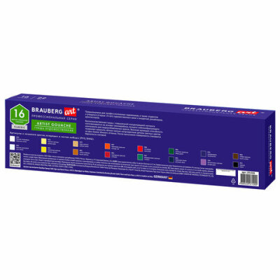 Художественная гуашь профессиональной серии BRAUBERG ART CLASSIC предназначена для живописи, художественных и декоративно-оформительских работ. Обладает высокой укрывистостью. Быстро сохнет, сохраняет яркий и насыщенный цвет.