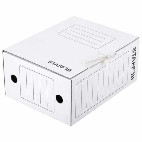 Папка архивная с завязками А4 (325х250 мм), 150 мм, до 1400 листов, микрогофрокартон, БЕЛАЯ, STAFF, 128875