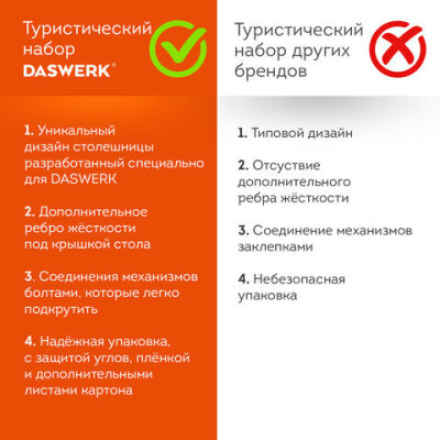 Удобный набор складной мебели DASWERK просто незаменим во время отдыха на природе.