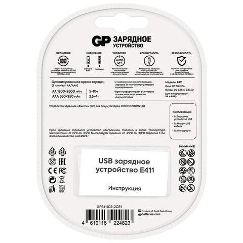 Зарядное устройство GP Е411 для 4-х аккумуляторов, блистер, Е411CS-2CR1