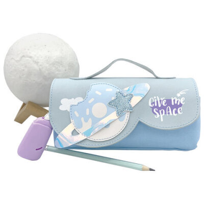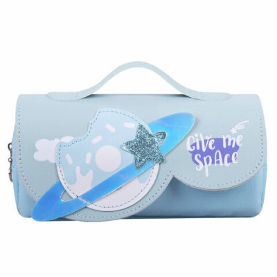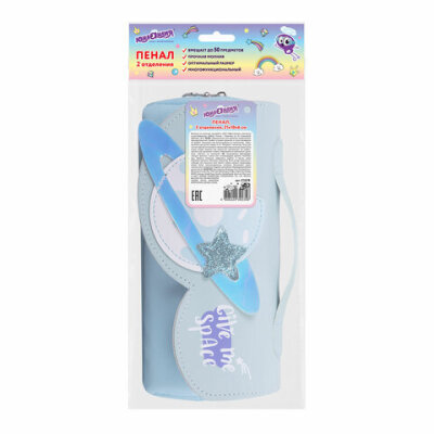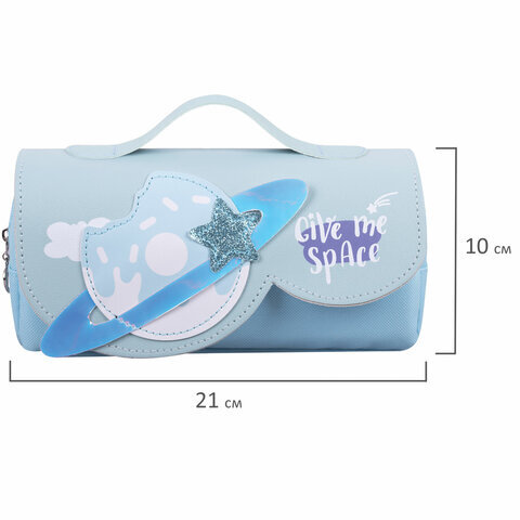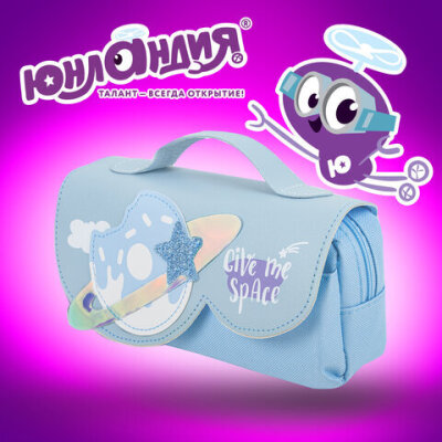 Пенал мягкий ЮНЛАНДИЯ с ручкой, 2 отделения, полиэстер, "My Space", голубой, 21х9х6 см, 271578