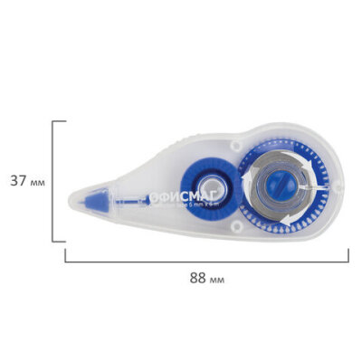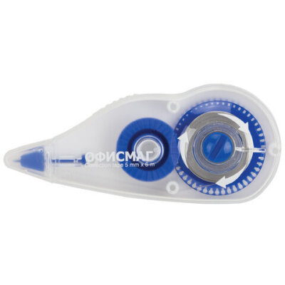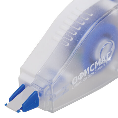 Корректирующая лента ОФИСМАГ N1, 5 мм х 6 м, прозрачно-синий корпус, механизм перемотки, блистер, 272659