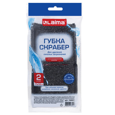 Губки-скраберы LAIMA в металлической оплетке из тонкой лески из нержавеющей стали идеально подходят для удаления стойких загрязнений с различных поверхностей.