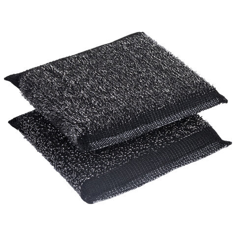 Губка-скрабер 11х10х1,5 см, поролон + металлическая оплетка КОМПЛЕКТ 2 штуки, посуда, уборка, LAIMA, 700058