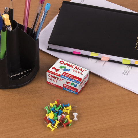 Силовые кнопки-гвоздики ОФИСМАГ, цветные, 50 шт., в картонной коробке., 222092